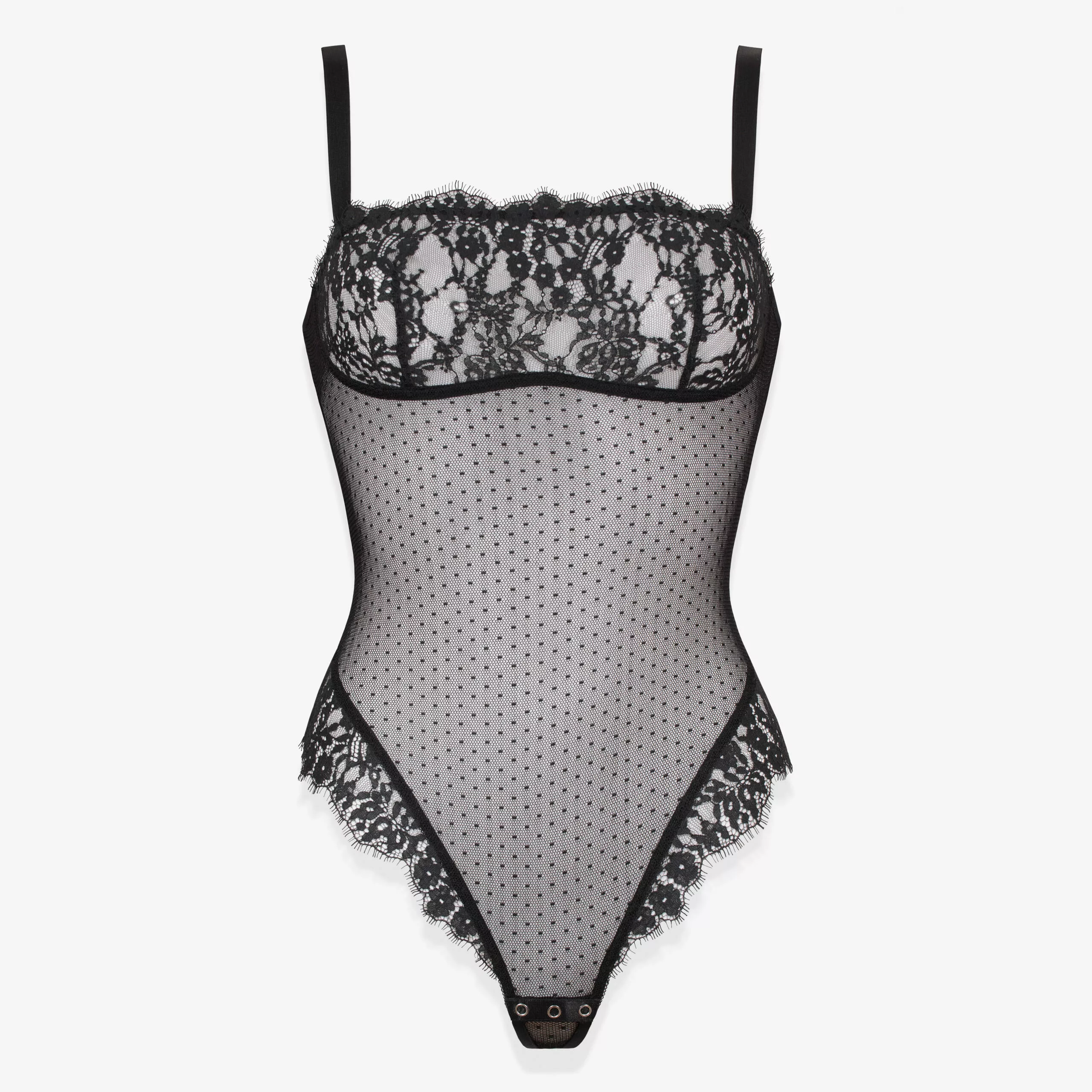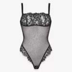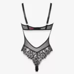 Гармонія, яка утворилась із різноманіття. Боді дивує неординарним поєднанням легкої та грайливої сіточки, всипаної дрібненькою вишивкою, із витонченим французьким мереживом з квітковими мотивами. Великою перевагою цього красеня є зручність та надійність посадки. Широкі бретелі, що регулюються, разом з щільною та еластичною резинкою під грудьми забезпечать гарну підтримку. Низ боді виконаний в улюбленій формі – бразиліана, яка вигідно підкреслює довжину ніг та форму сідниць. Безумовного шарму придає глибокий виріз по спинці, який є елементом витонченої спокусливості.