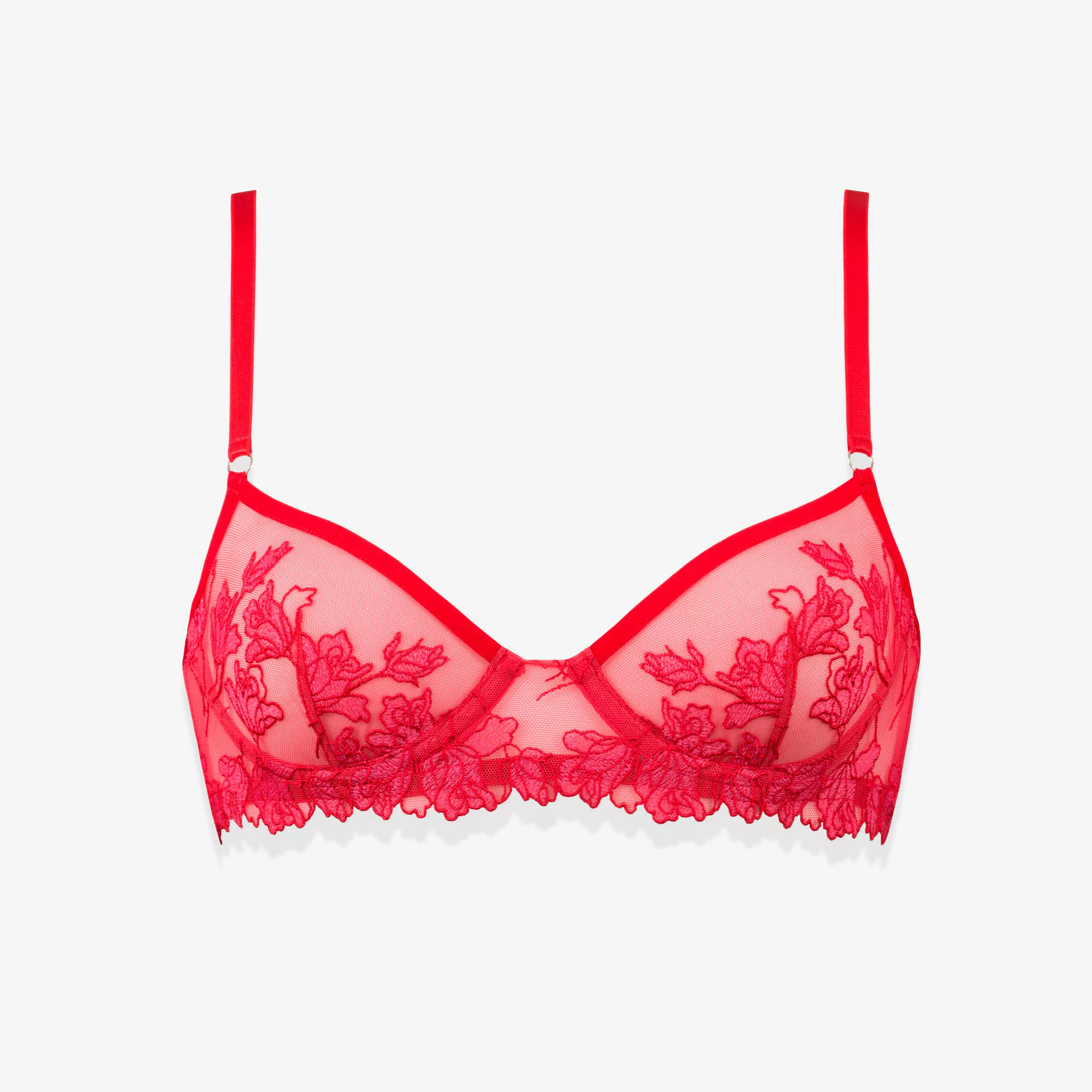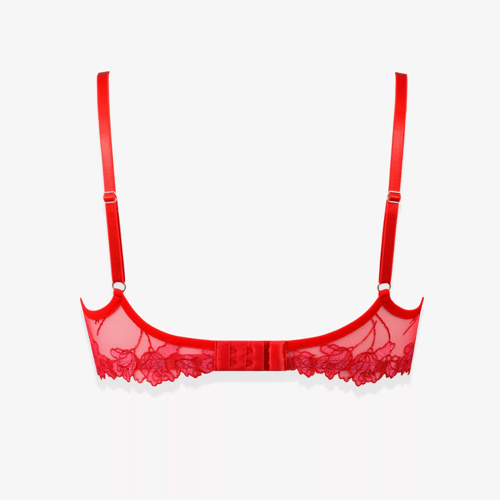 Жіноче тіло призначене для того, щоб вкривати його квітами. Ідеальним рішенням цьому є нижня білизна, що виконана із сіточки увінчаної ніжною квітковою вишивкою. Бюстгальтер моделі планж підійде власницям невеликого бюсту. Він оснащений металевими кісточками під грудьми та пластиковими корсетними кісточками по боках, завдяки чому забезпечує гарну підтримку та правильну посадку. Бретелі регулюються по висоті.
