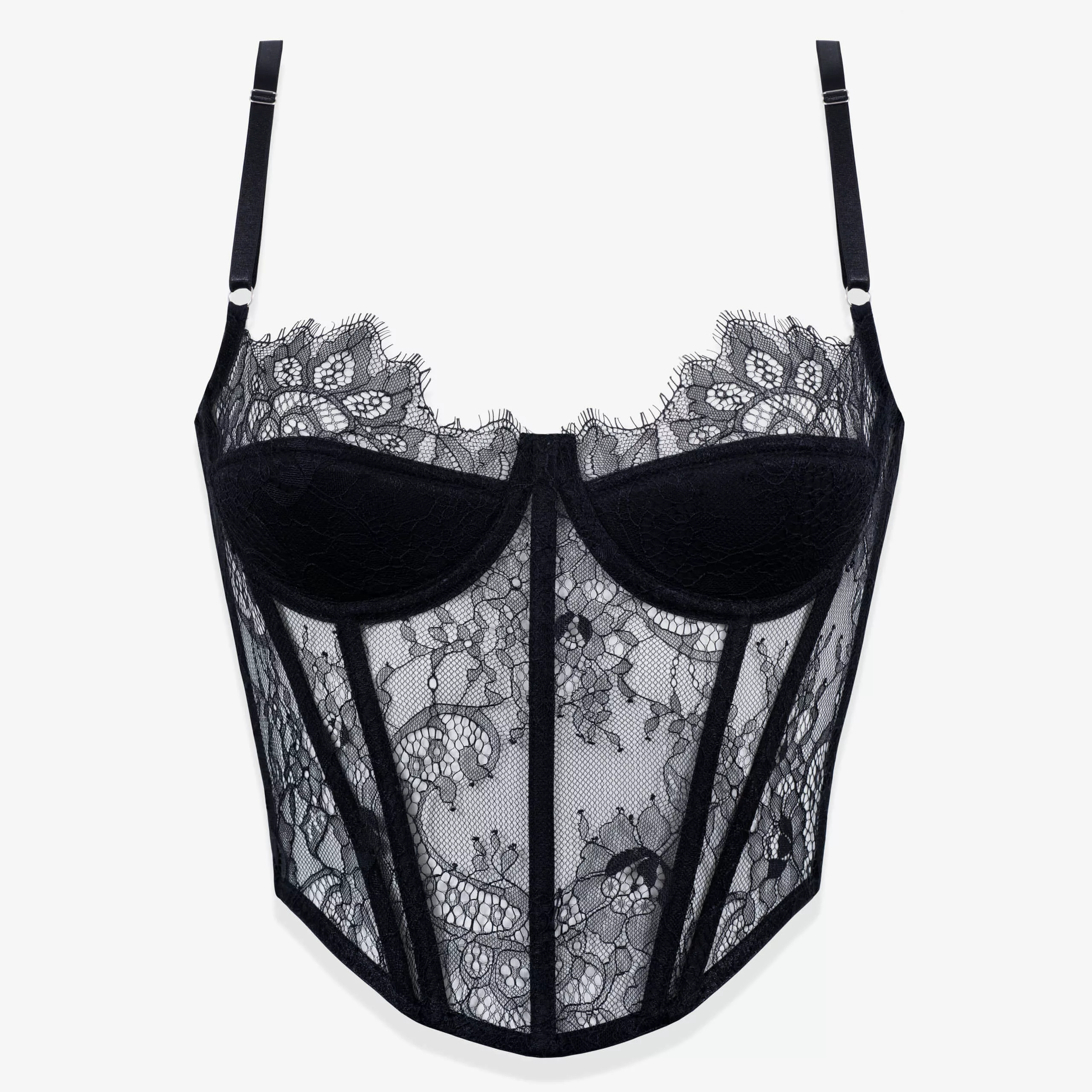 П’янкий та невимушено чарівний, Black Swan з’являється у житті для особливого моменту, але залишається назавжди у пам’яті та серці. Бюстьє-корсет виконаний з витонченого мережива, має вертикальні кісточки, що формують неймовірний силует. Частина чашечки бюсту продубльована поролоном, який покривається бавовняною тканиною для ніжнішого дотику.