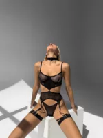 Ця річ саме для тих, хто любить додати майстерних хитрощів у свій особливий образ. Гартери виконані з еластичних щільних резиночок та доповнені срібною металевою фурнітурою. Їх об’єм на ніжках можна змінювати за допомогою регуляторів. А також є можливість приєднати гартери до поясу з допомогою панчохотримачів на поясі. Доповнюйте свій образ поясом, комплектом білизни, панчохами та халатиком на ваш вибір. Склад: 89% поліамід, 11% еластан.