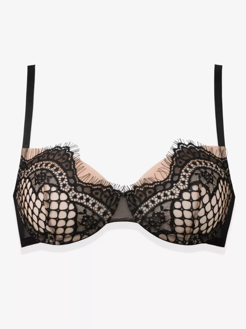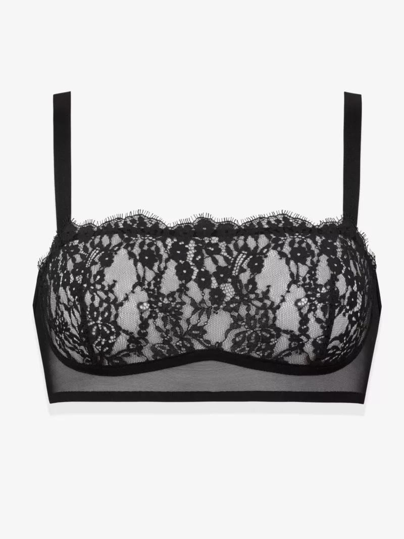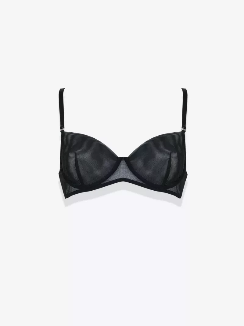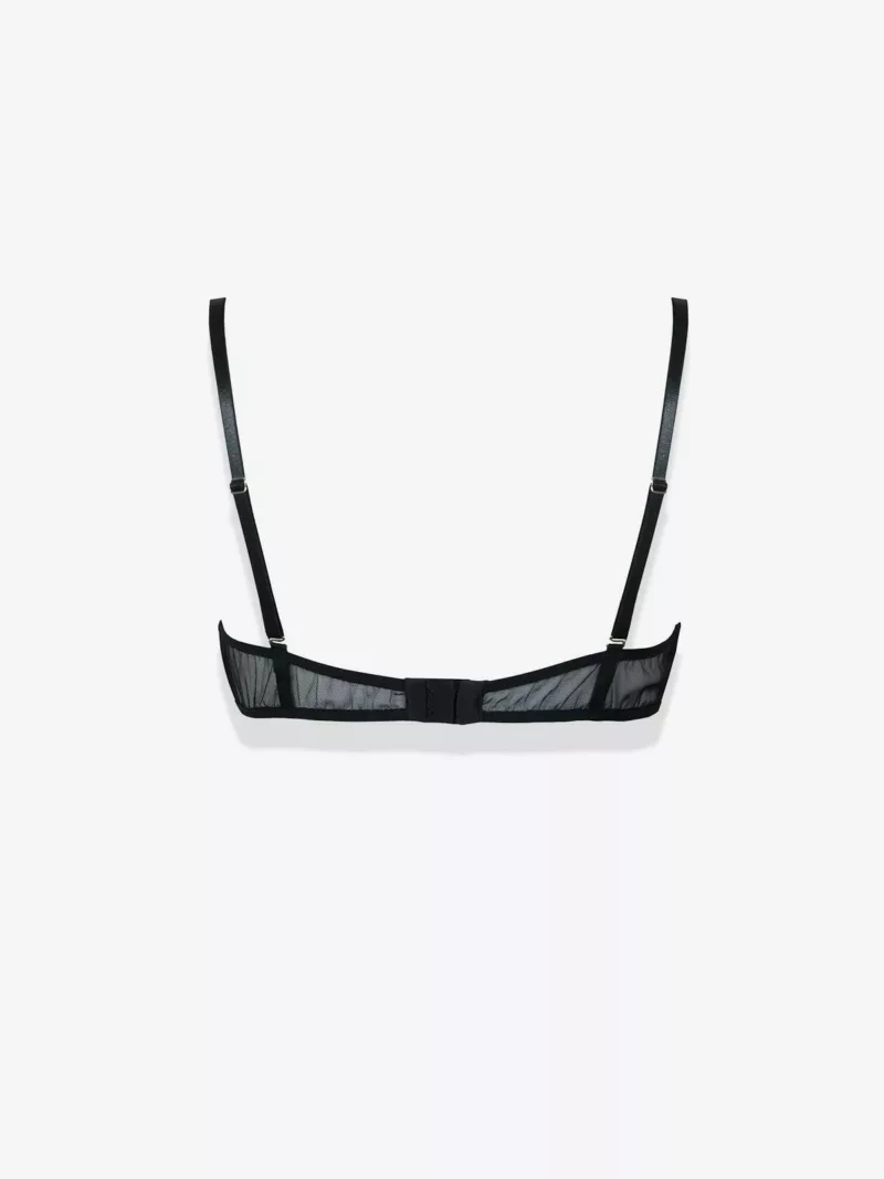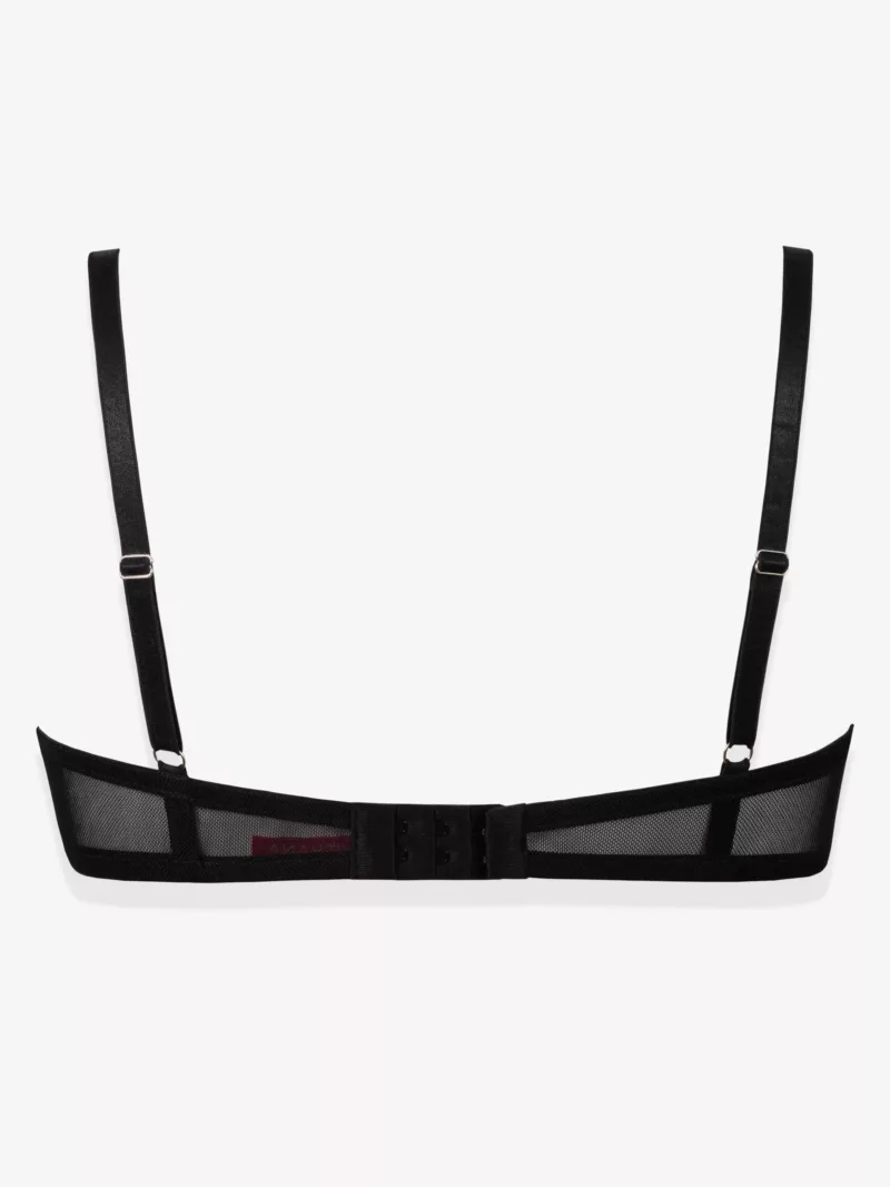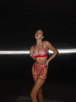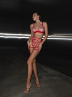 Бралет в насиченому рожевому кольорі, зроблений із сітки, увінчаної вишитими червоними сердечками. Бретелі регулюються по висоті.