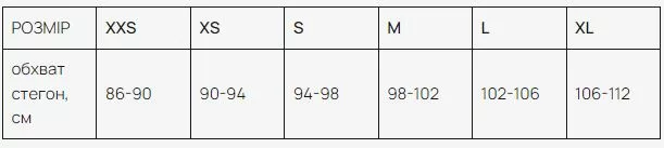 Таблиця розмірів комплектів