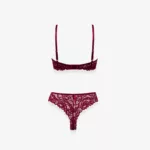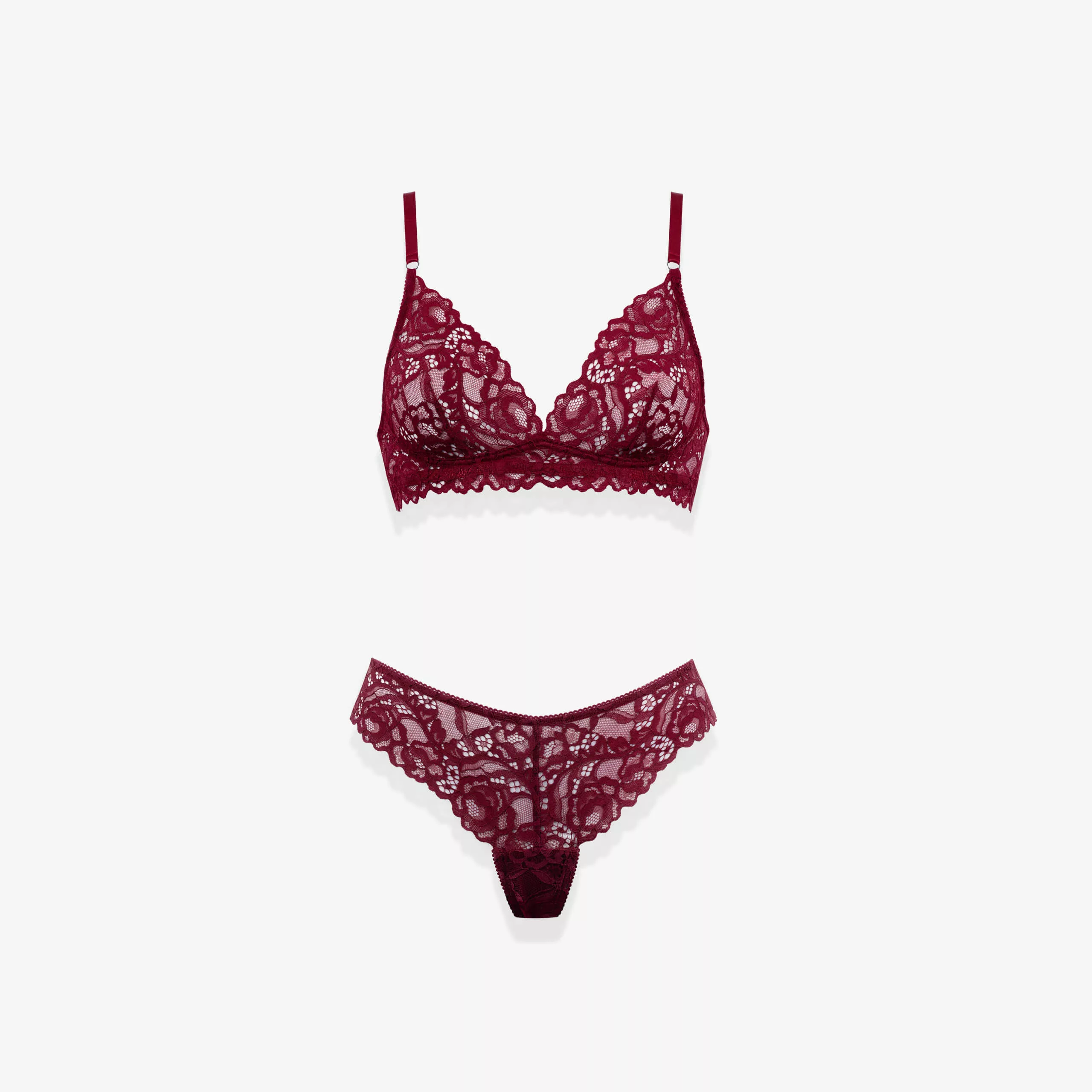 Комплект Lily, квітковий візерунок якого ще більше розквітає на тілі. Бюстгальтер без кісточок виконаний із щільного мережива, що забезпечить зручність та гарну підтримку бюсту. Трусики так само виготовлені з квітчастого мережива у неймовірно спокусливій формі бразиліана. Ластовиця 100% бавовняна.
