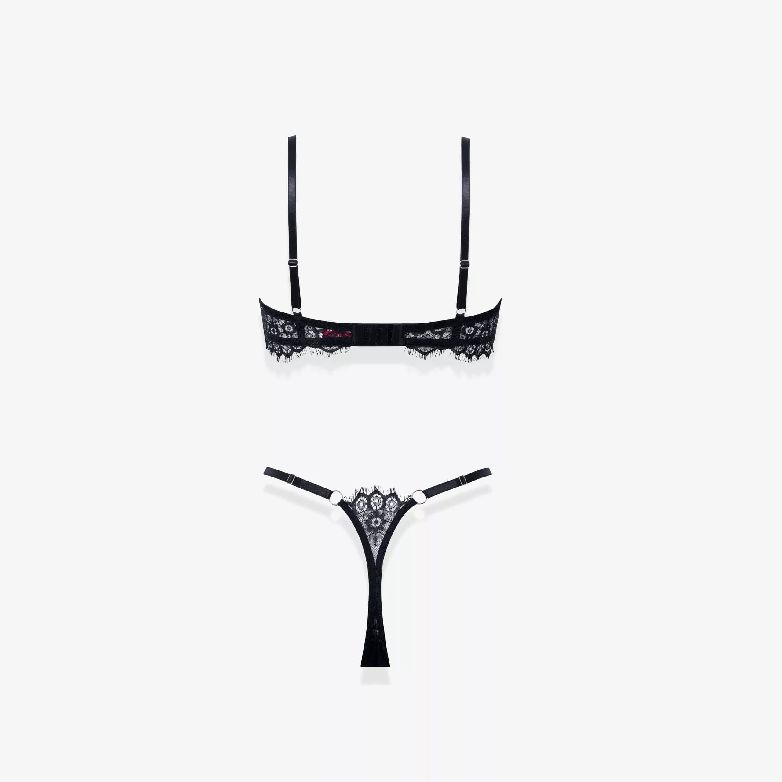 Настільки ж неземний, як і відгомін місячного сяйва у твоїх очах. Комплект Moonlight виконаний з витонченого мережива та має особливий дизайн. Бюстральтер на металевих кісточках з міцними бретелями та якісною фурнітурою має ідеальну та комфортну посадку. Трусики-стрінги виглядають казково на тілі, але завдяки своїй формі, залишаються непомітними під одягом. Ластовиця 100% бавовняна.