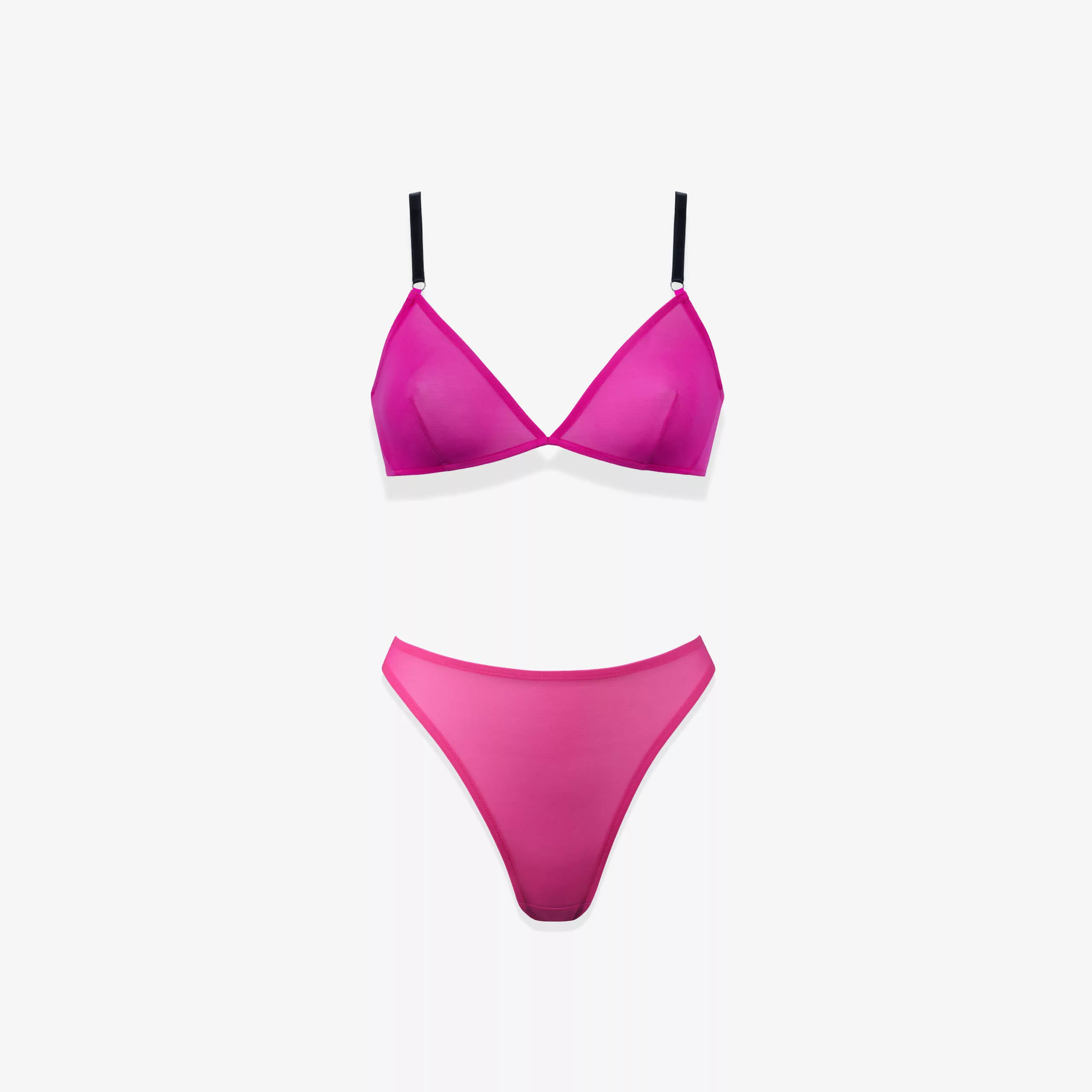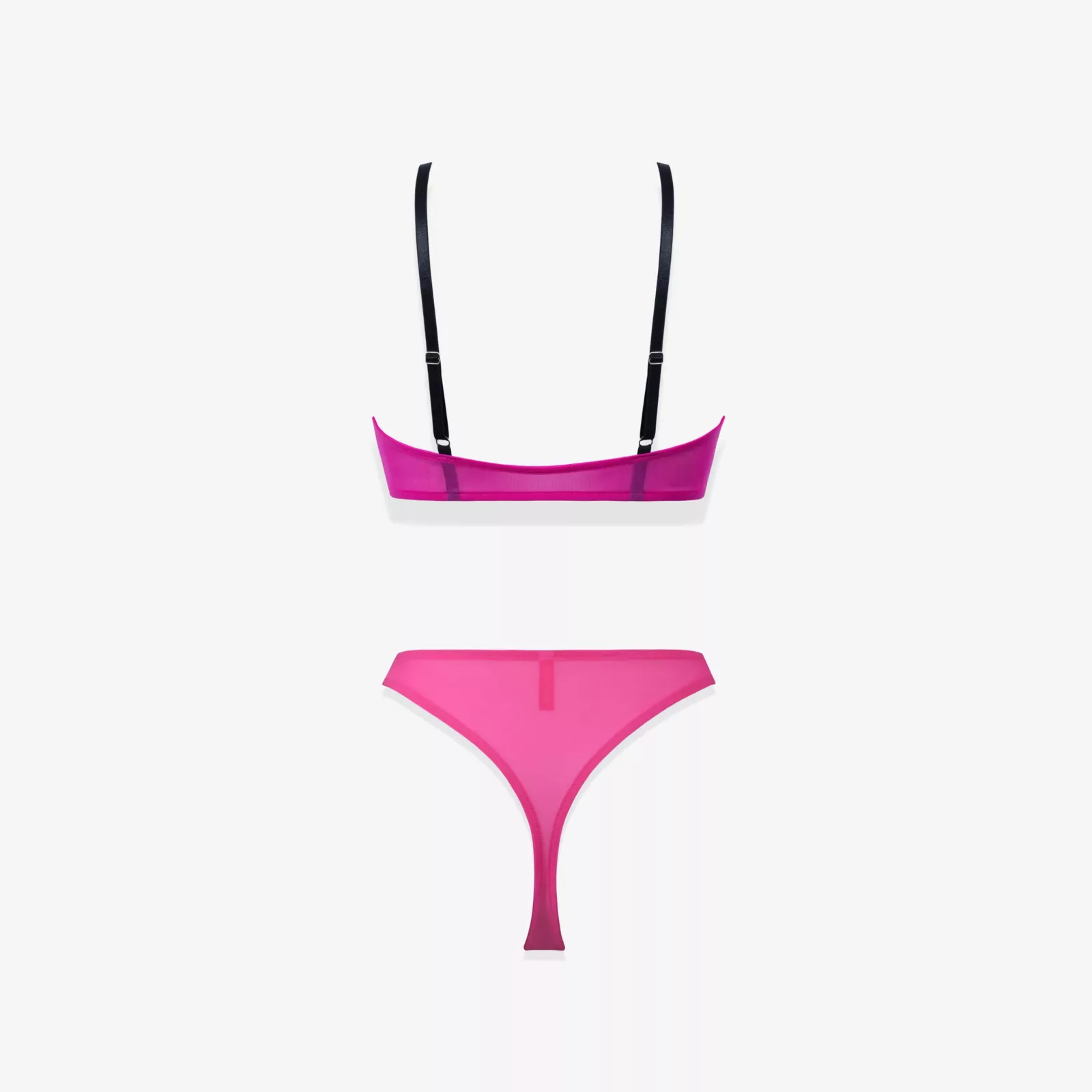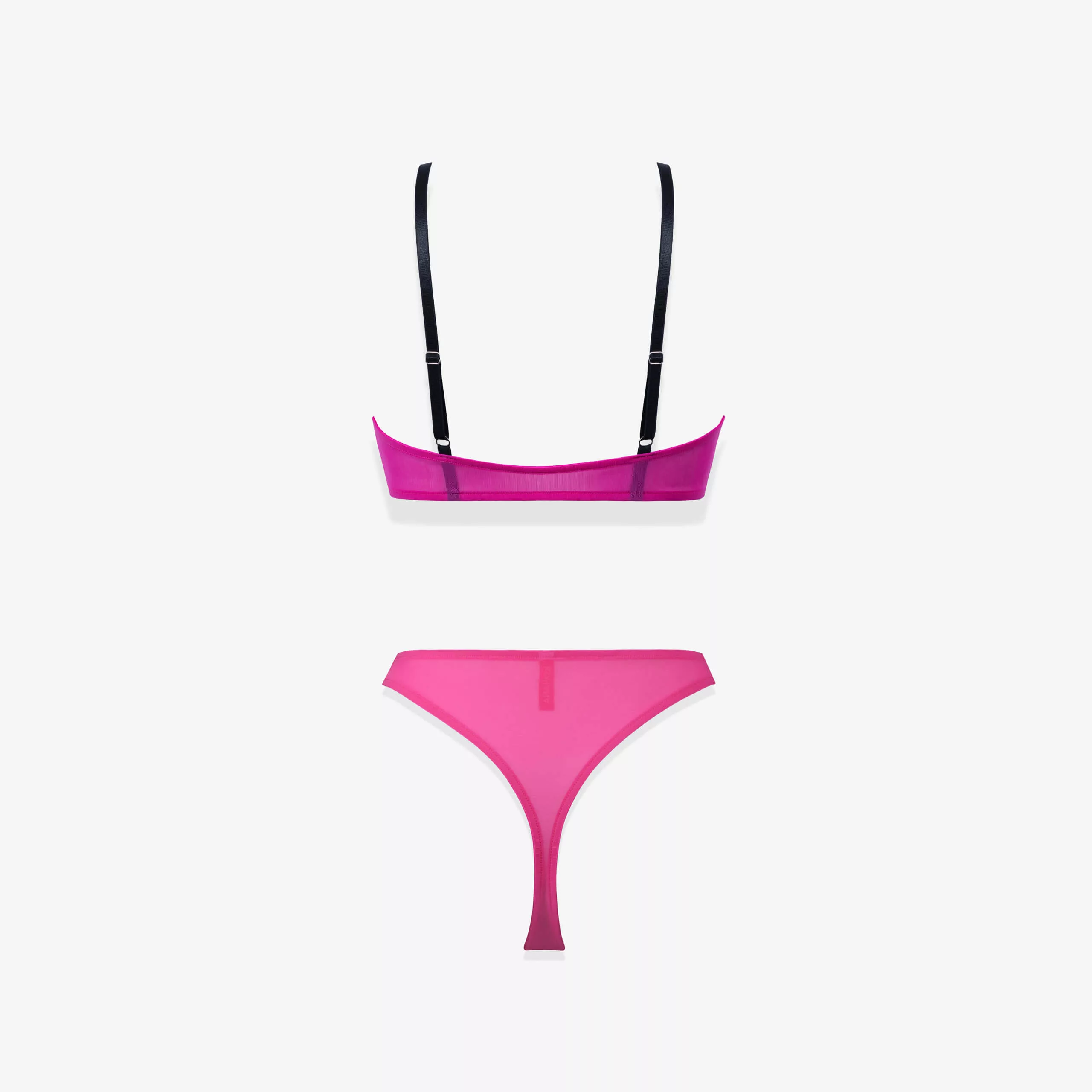 Впустіть в своє життя більше кольору разом з фантастичним Peony. Неймовірно привабливий топ виконаний зі щільної та еластичної сіточки яскраво-рожевого кольору. А прикрашений контрастними чорними бретелями. Це саме той бра з м’якими чашечками та без кісточок, який забезпечить гарну підтримку за рахунок якісного матеріалу. Бретелі регулюються по висоті. Яскраво-рожеві трусики-стрінги мають завищену лінію ноги та посадку на талії. Такий силует візуально зробить ноги довшими, а талію тендітнішою. Ластовиця – 100% натуральна бавовна.