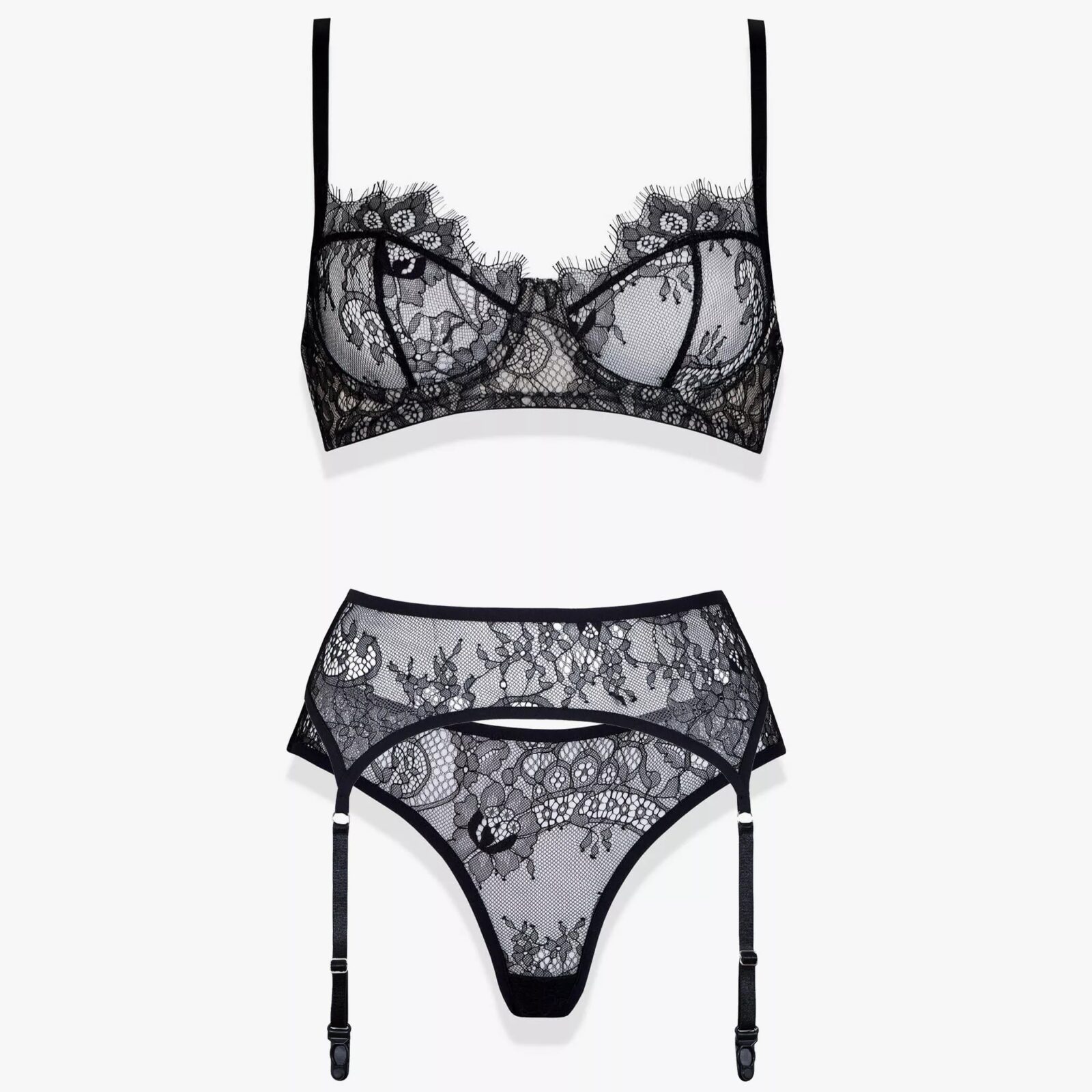 Повний образ Black Hurricane включає: -бюстгальтер -трусики -пояс для панчіх -чорні панчохи -подарункове пакування Любов у повітрі з нашим непереможним новим комплектом Black Hurricane, ідеальним подарунком для когось особливого або для себе. Бюстгальтер в насиченому чорному кольорі, зроблений із італійського сітчатого мережива, увінчаного виплетенеми квітами. З підтримкою із металевих кісточок під грудьми та пластиковими кісточками з обох боків. Бретелі регулюються по висоті. Трусики Black Hurricane – у спокусливій та привабливій формі – бразиліана. Спереду трусики виготовлені із італійського мережива. Ззаду – щільна, еластична сіточка чорного кольору з безшовними краями. Ластовиця із 100% бавовни. Доповнюйте свій образ халатиком на ваш вибір. Склад: 79% поліамід, 11% еластан, 10% бавовна.