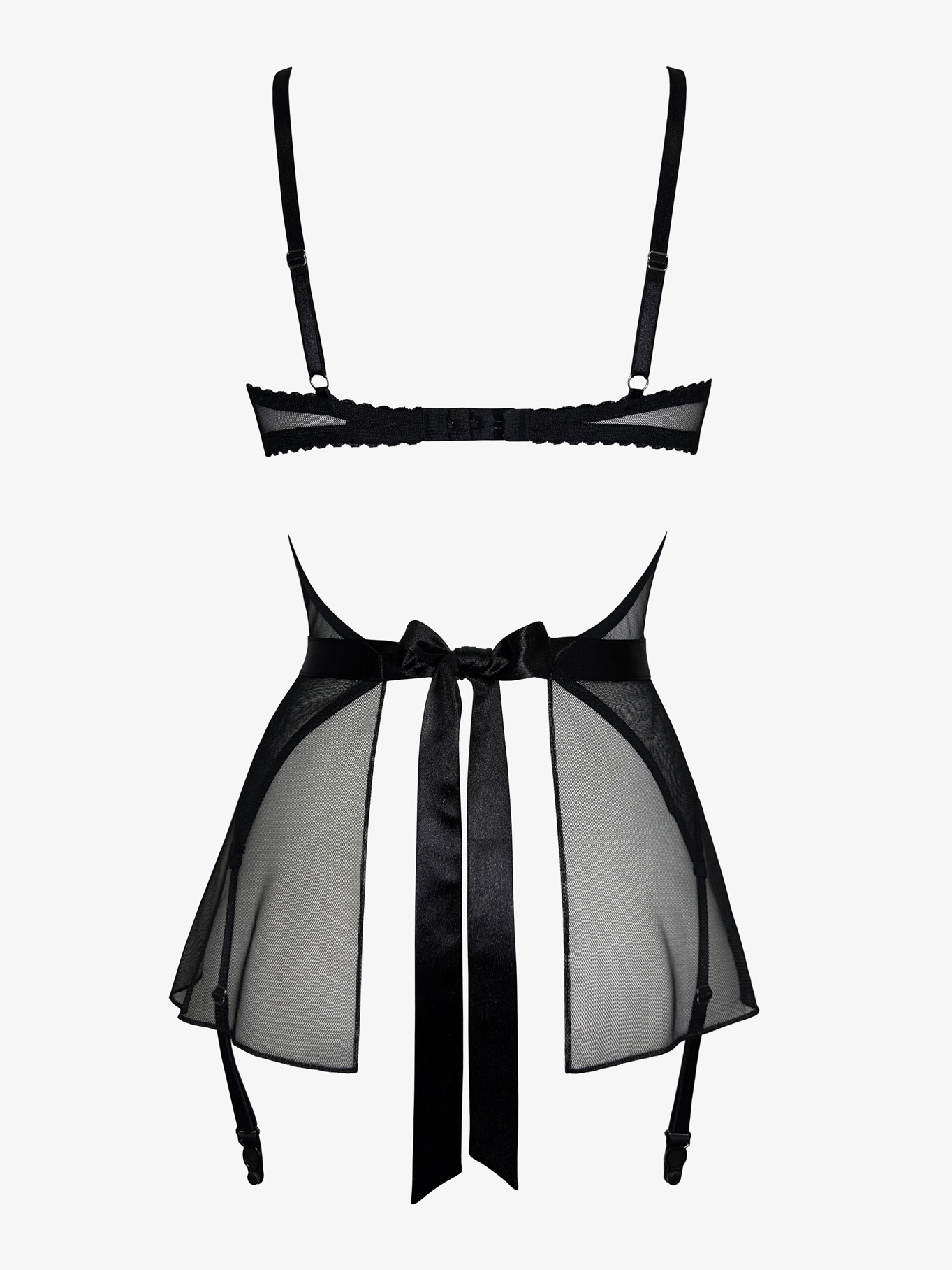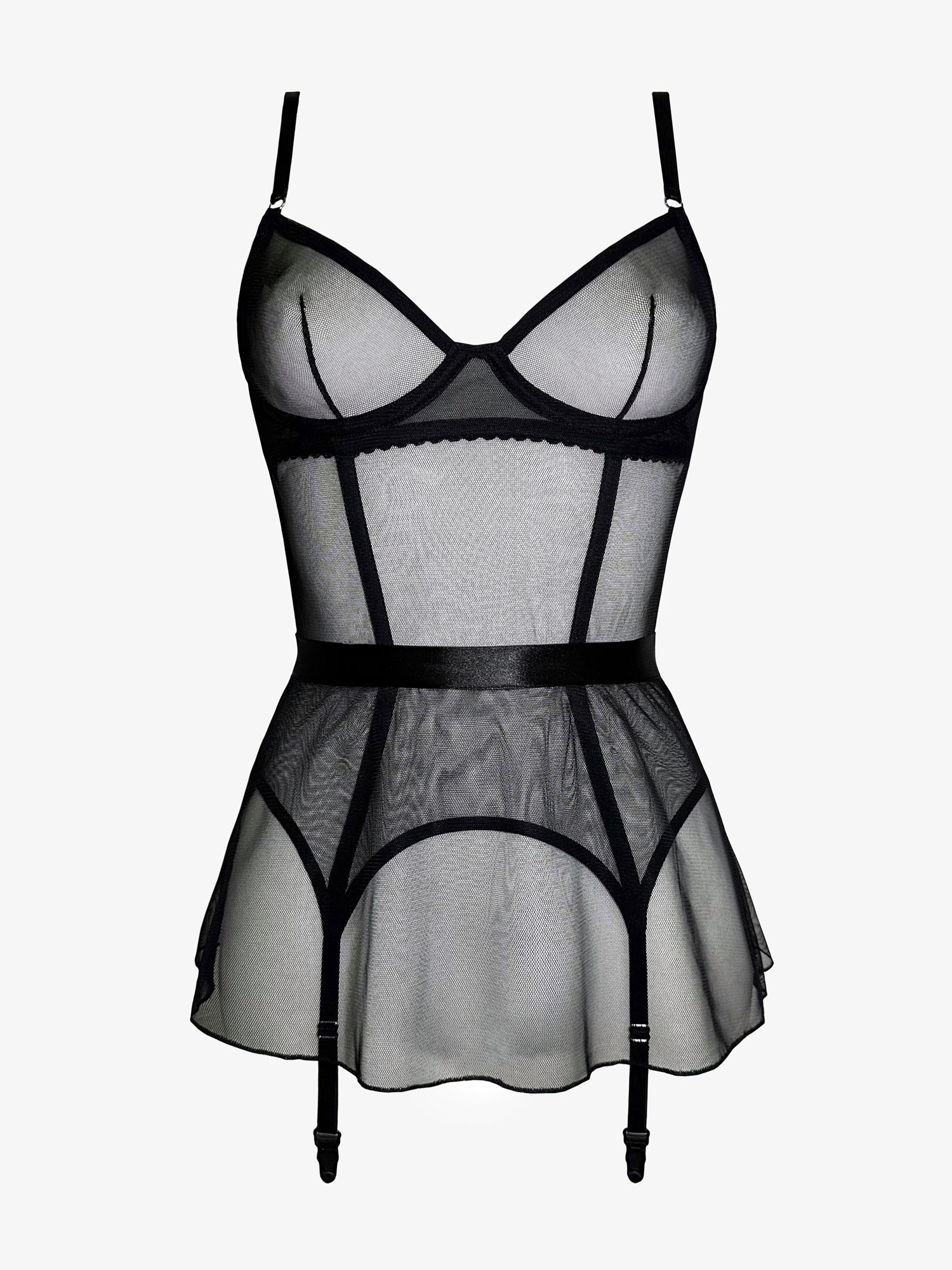 Розкішна сукня Love Spell точно знає свою справу, вона виявить усі найпотаємніші бажання та здійснить їх. Комплект виконаний із пікантної прозорої сітки. Каркасний бюстгальтер у сукні з підтримуючою чашечкою не змусить хвилюватися за якість підтримки бюсту. Він регулюється по ширині завдяки застібці та бретелям по висоті. Трусики-стрінги так само регулюються по ширині, завдяки чому подарують ідеальну посадку. Ластовиця 100% бавовняна. Доповнюйте всій образ чорними панчохами, гартерами та халатиком на ваш смак. Склад: 20% Нейлон, 50% Поліамід, 20% Поліестер, 10% бавовна.
