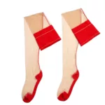 Романтичний образ, доповнений таким жіночним аксесуаром, затьмарить розум будь-кому. Тонкі панчохи бежевого кольору з червоним поясом та вертикальною декоративною лінією ззаду підкреслять довжину та струнксть ніжок. Ультратонкі, щільністю 10 ден, вони будуть майже невагомими, але все ж досить міцними та еластичними. Приємною перевагою цих панчіх є ущільнена пятка та носочок, що додає надійності. Задля комфорту та стабільності посадки панчохи необхідно носити з поясом для панчіх.