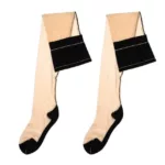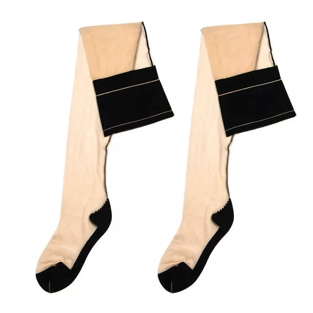 Романтичний образ, доповнений таким жіночним аксесуаром, затьмарить розум будь-кому. Тонкі панчохи бежевого кольору з чорним поясом та вертикальною декоративною лінією ззаду підкреслять довжину та струнксть ніжок. Ультратонкі, щільністю 10 ден, вони будуть майже невагомими, але все ж досить міцними та еластичними. Приємною перевагою цих панчіх є ущільнена пятка та носочок, що додає надійності. Задля комфорту та стабільності посадки панчохи необхідно носити з поясом для панчіх. Склад: 88% нейлон, 12% спандекс.