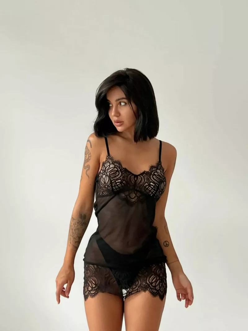 Ми пропонуємо на ваш вибір різні варіанти домашнього, нічного одягу. Це може бути подовжена сорочка з сіточки чорного кольору, прикрашена квітами, мереживом, мереживний пеньюар яскраво-червоного кольору.