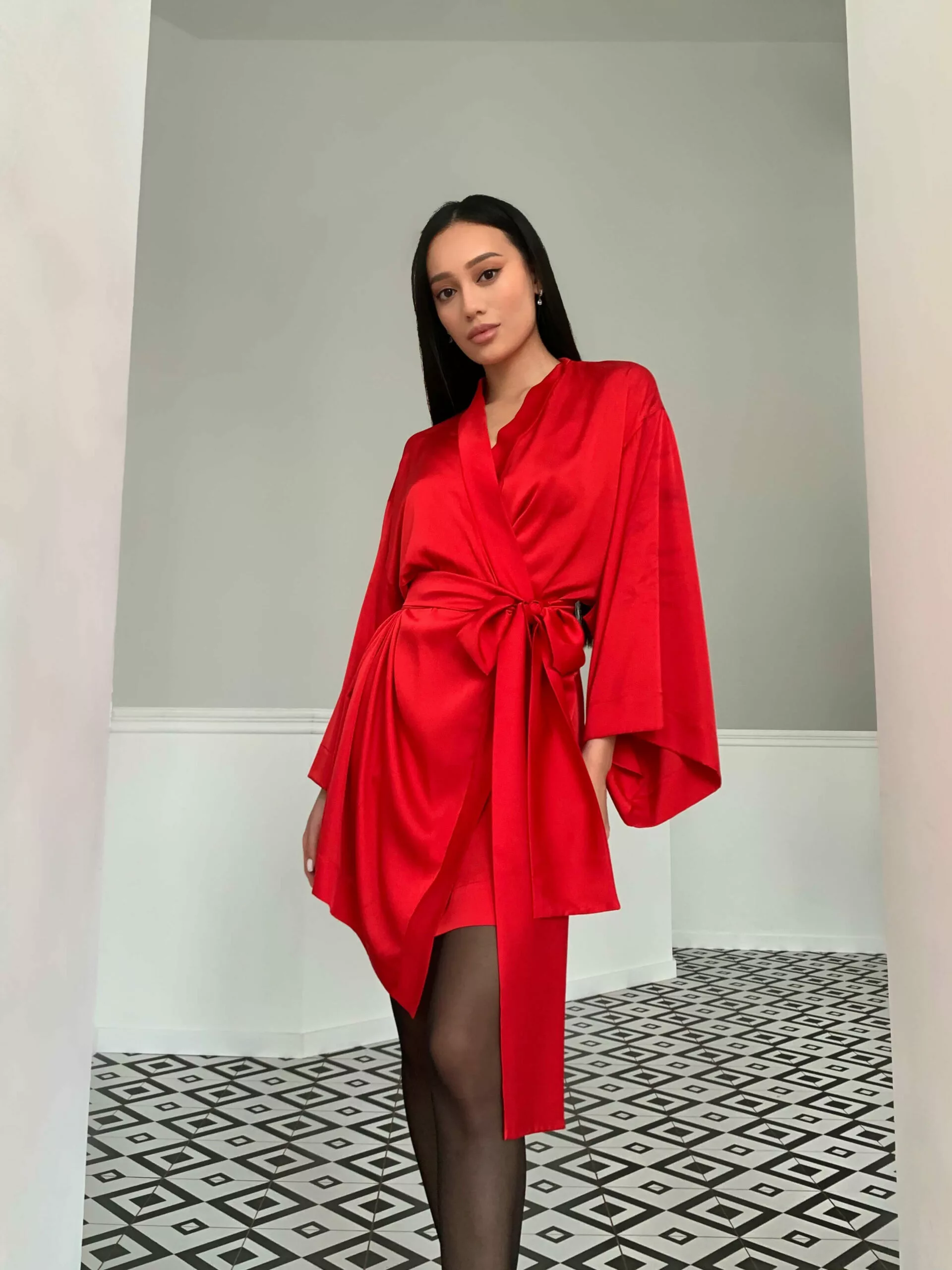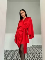Вогненний Схід знайшов своє увінчання в домашньому халатику Samurai Gown. Насичений червоний колір наповнений теплом та пікантністю, а легка та м’яка тканина приємно огортає тіло. Халатик виготовлений з якісного штучного шовку. Така тканина дає тілу вільно дихати та не вимагає особливого догляду, витримуючи делікатне машинне прання. Силует кімоно підкреслює жіночність, а довгі та широкі рукава додають граційності кожному руху. Халатик також має широкий пояс, що вигідно підкреслює талію.
