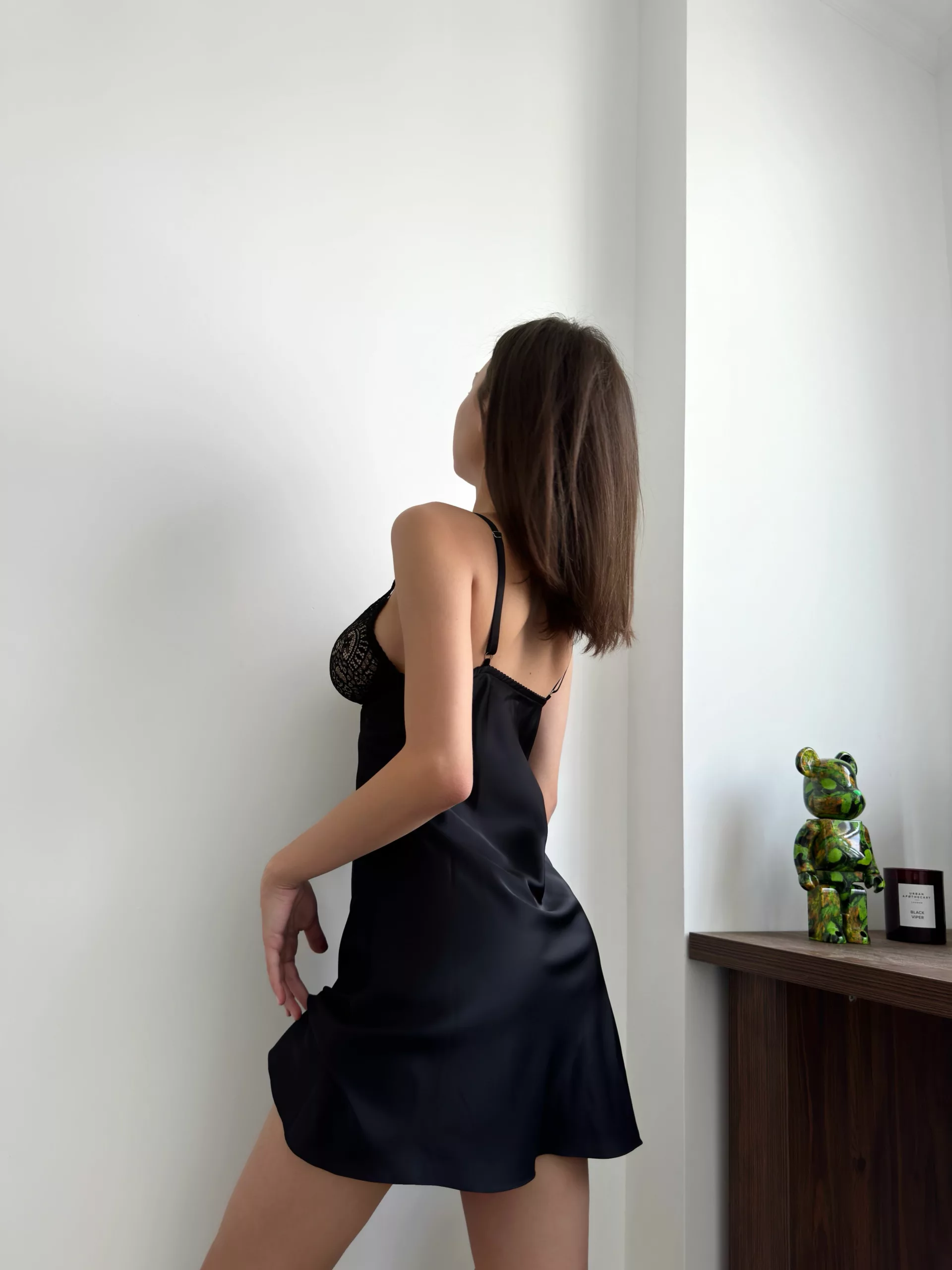 Маленька чорна сукня – це секретна зброя у гардеробі кожної жінки. А новий пенюар дарує можливість додати такої ж вишуканої елегантності домашнім образам. Сукня напівприлеглого силуету виконана з легкого штучного шовку. Такий матеріал не заважає тілу дихати, а також не потребує специфічного догляду, витримуючи делікатне машинне прання. Напівпрозорі мереживні чашки додають спокусливості образу. Бретелі регулюються по висоті за допомогою якісної металевої фурнітури. Доповнюйте свій образ шовковим халатиком на ваш вибір. Склад: 50% віскоза, 47% поліестер, 3% еластан.