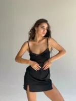 Феєрична та потужна романтика можлива з цією красунею. Комбінація Pure Temptation виконана з найніжнішого штучного шовку та доповнена витонченим мереживом. Вона має напівприлеглий силует, пікантний виріз до талії та стрічки-зав’язки ззаду. Брителі сукні регулюються по висоті якісною металевою фурнітурою.