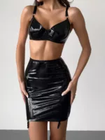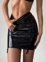 Ця річ саме для тих, хто любить додати майстерних хитрощів у свій особливий образ. Provocation Skirt виконана з штучної лакованої шкіри. Ззаду спідниця оздоблена якісною металевою блисковкою. До спідниці можна приєднати тримачі для панчох.