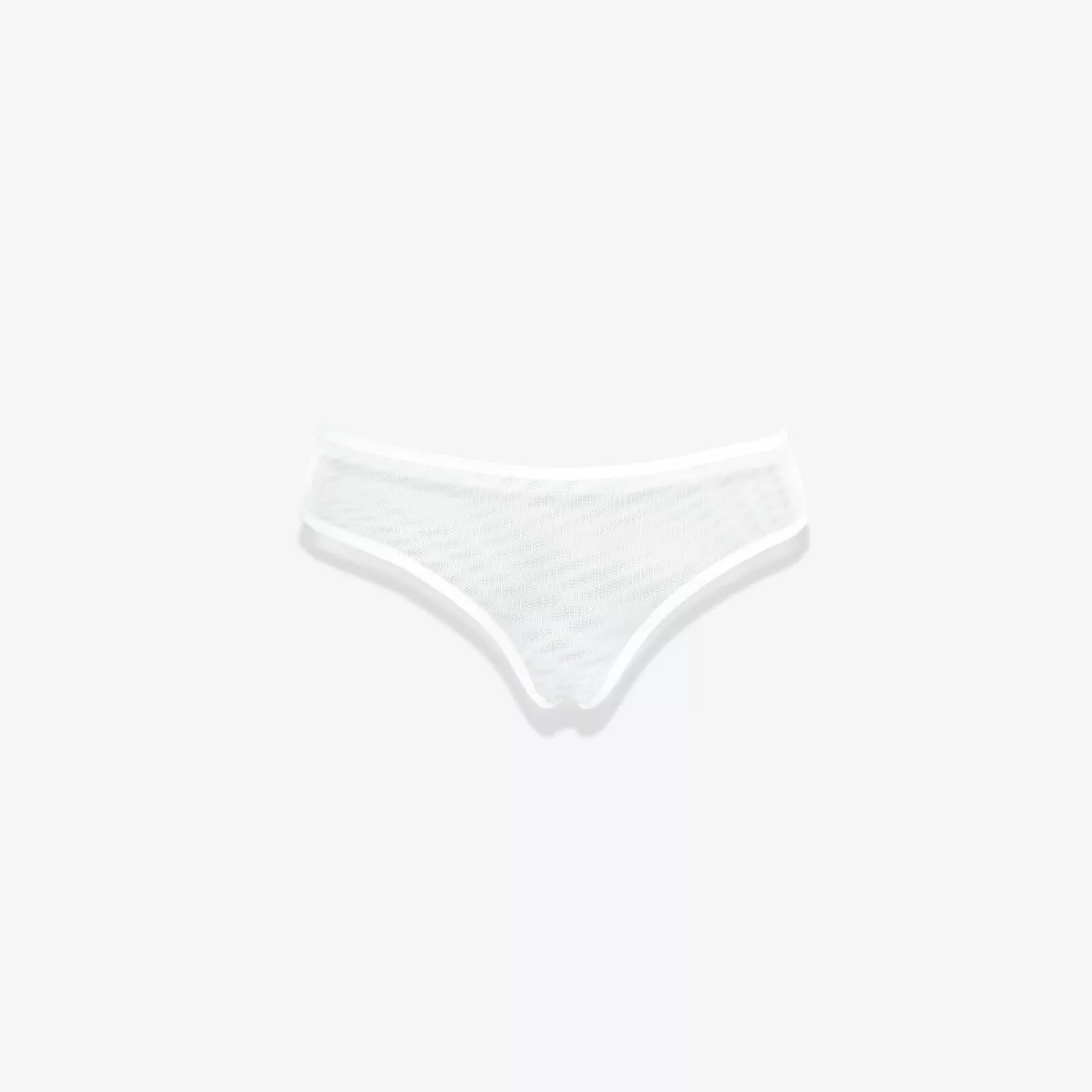Класичний базовий комплект із еластичної білої сіточки – ідеальний варіант у будь-якій ситуації. Білі трусики – сліпи із гладкої м’якої сіточки – напівпрозорі, комфортні, підкреслюють форму сідниць.