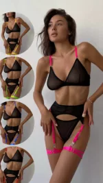 Ідеальна білизна BlackPink, яка ненав’язливо і витончено облягає жіночні форми та вірно служить в усіх випадках життя. Трусики-стрінги виготовлені з чорної сіточки, по бокам оздоблені яскравими рожевими резиночками з регуляторами. Вони мають середню посадку, тож візуально вигідно підкреслюють довжину та стрункість ніжок. Ластовиця 100% бавовняна. Доповнюйте свій образ бюстгальтером та поясом BlackPink, гартерами або панчохами та халатиком на ваш вибір. Склад: 79% поліамід, 11% еластан, 10% бавовна.